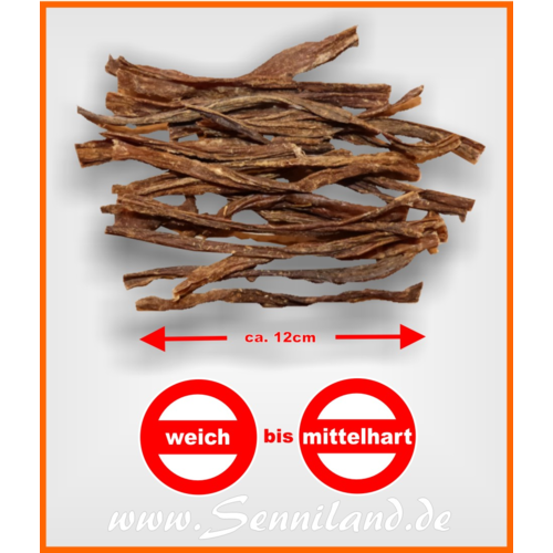 Weicher bis mittelharter, sehr schmackhafter Kauspaß für Schnüffelnasen aller Rassen in handlichen 12-15cm Stücken. Sehr beliebt bei kleinen und mittleren Rassen. Aber auch die "Großen" lieben es als Super-Belohnung.